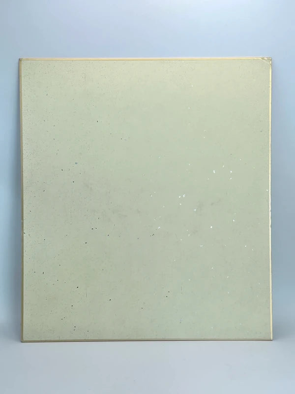 A vintage shikishi orignal artwork card. The adorably sleepy, floppy dog is painted in traditional sumi-e style, using only black ink and varying tones of grey. With its closed eyes and relaxed posture, the pup embodies calmness, simplicity, and the quiet joys of everyday life. It resemble a Shar Pei lending a playful tone to the composition.