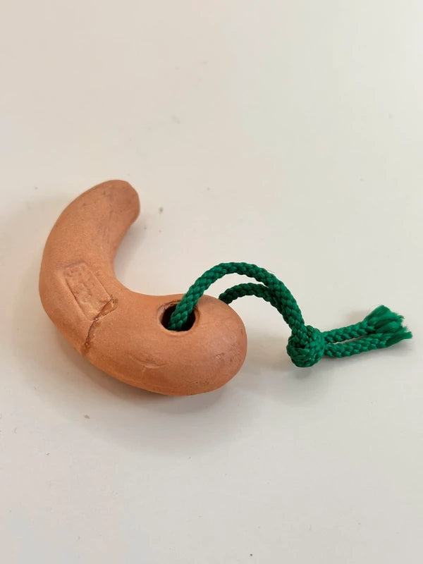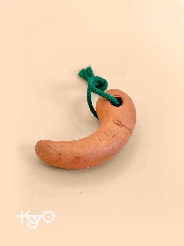 Crafted from earthen clay, this magatama (curved bead) reflects a style reminiscent of ancient Jomon-period ornaments, symbolizing spiritual power, connection to nature, and ancestral blessings. Its smooth, crescent-like shape is often believed to ward off evil spirits and attract positive energy.