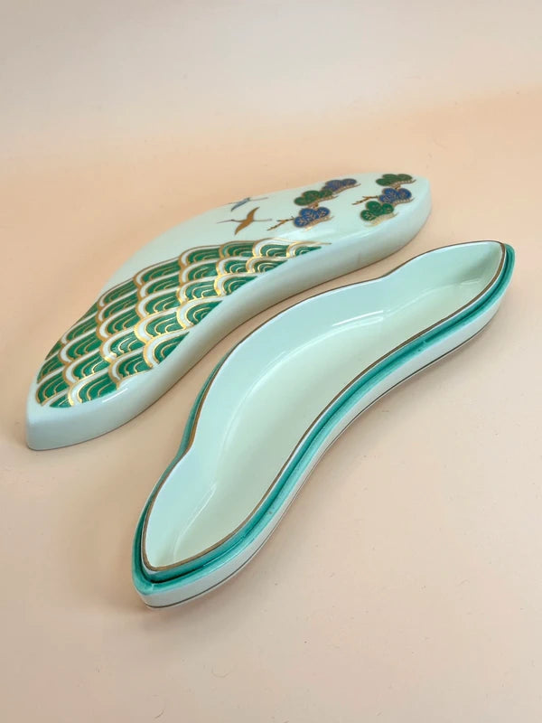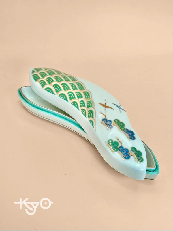 TB06 - Kiyomizu-yaki Bean Pod-Shaped Lidded Container