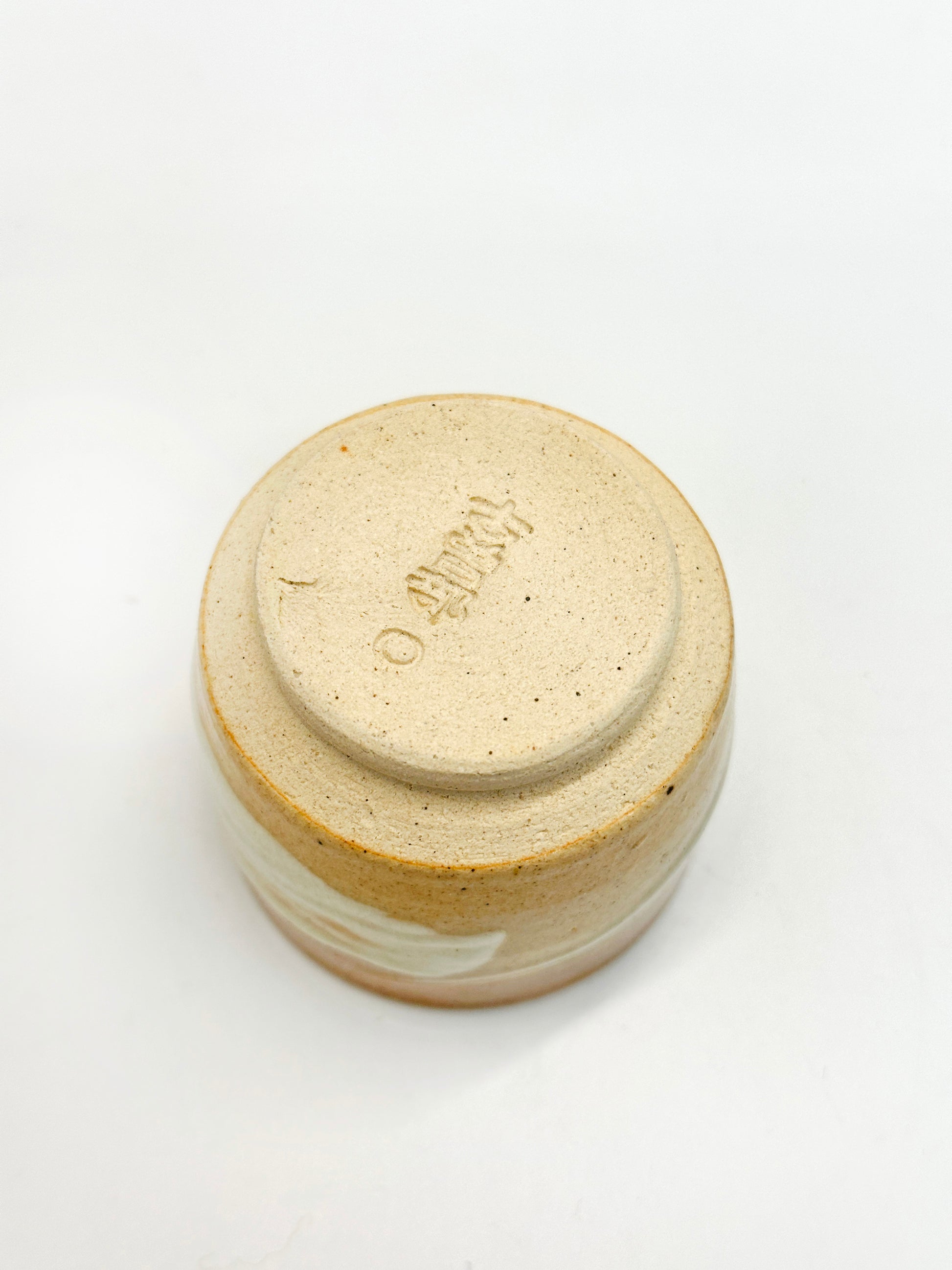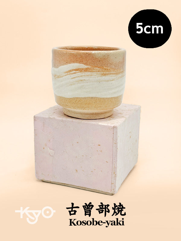 This small Kosobe-yaki (古曾部焼) cup is crafted in a style of Hagi ware (萩焼), expressing quiet refinement in a compact form.