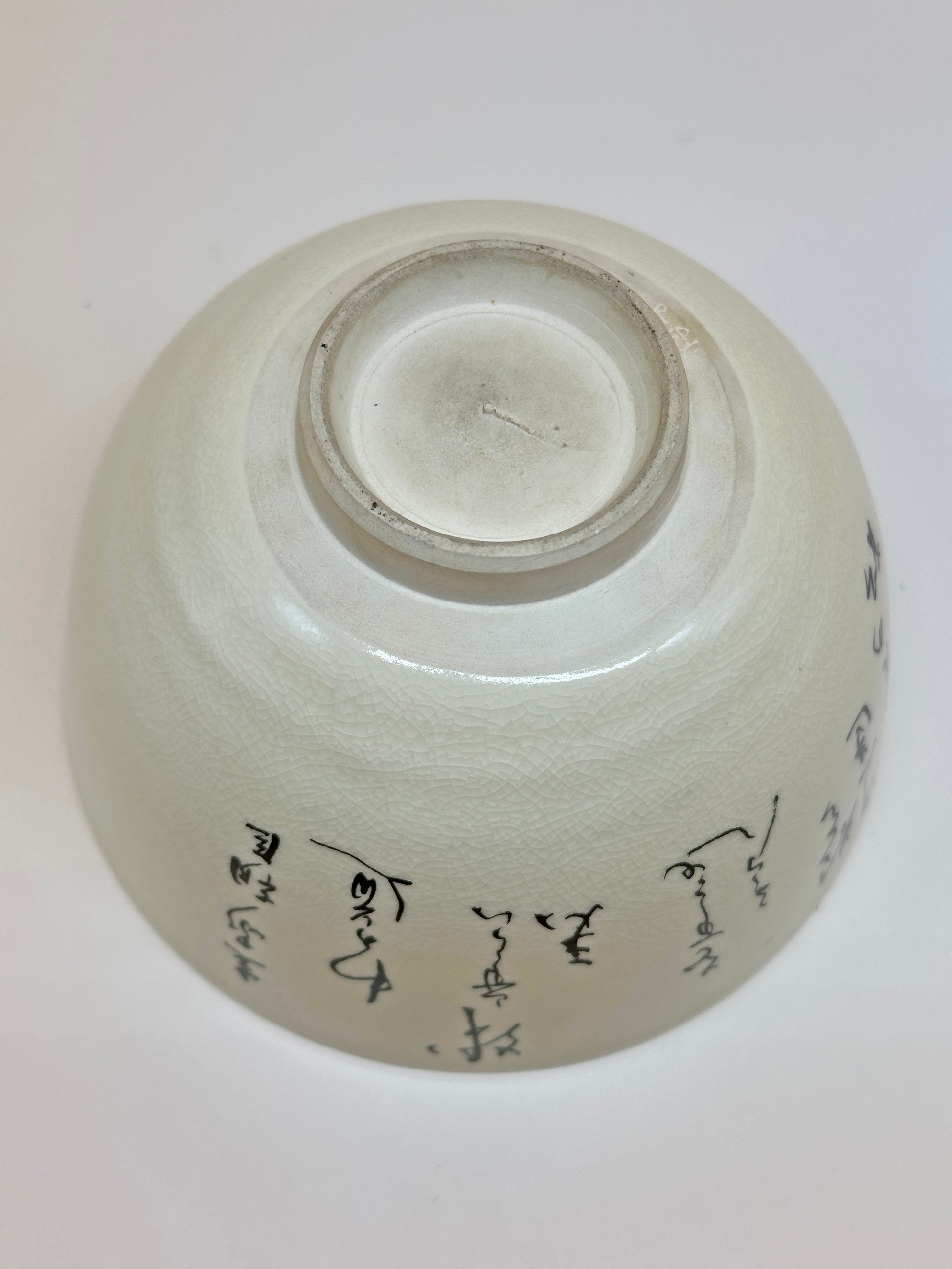 The calligraphy flows freely across the surface, blending art and literature into the vessel. It evokes the idea of “wa” (和) — harmony, peace, and balance — values at the very heart of the tea ceremony. The refined brushwork adds a contemplative quality, making the bowl not only a functional utensil but also a bearer of poetic spirit.