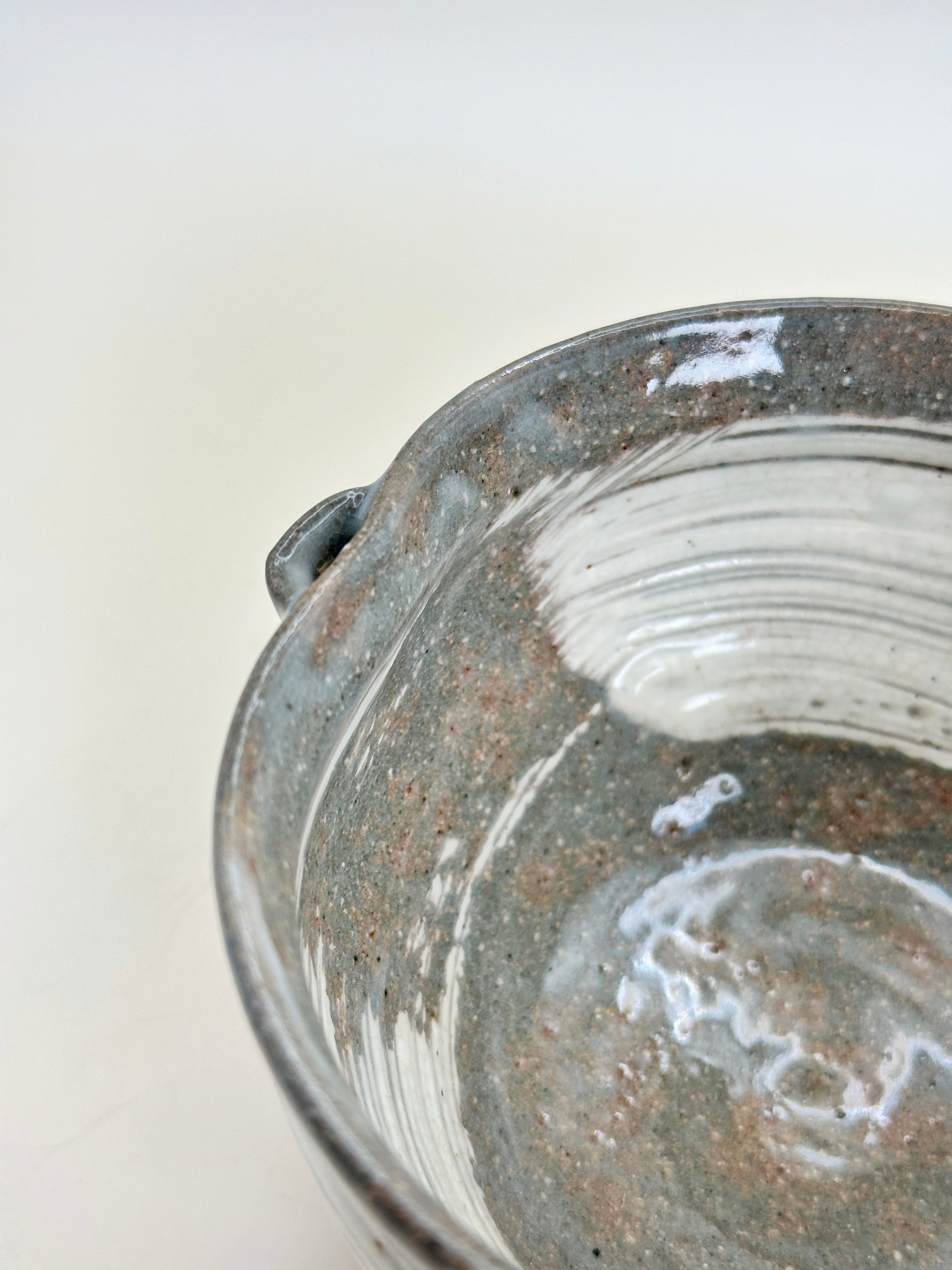Overall, this Hakeme chawan conveys a sense of spontaneity and calm coexistence. It feels both dynamic and humble, making it a compelling tea bowl that rewards close observation and deepens in character with continued use.