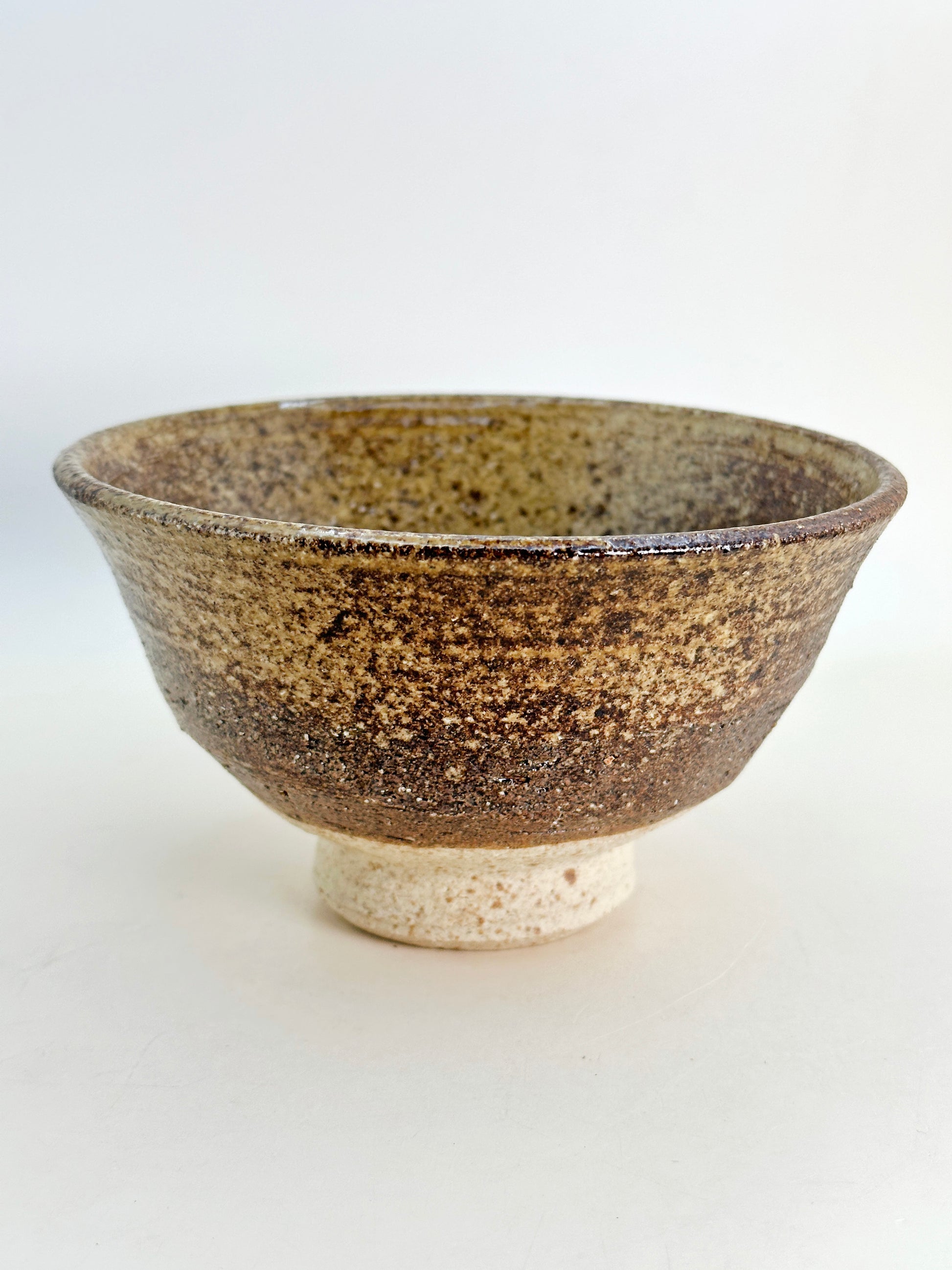 The interior contrasts gently with a softer glaze pooling toward the base, creating depth and warmth that would beautifully frame vibrant green matcha. The slightly flared rim and balanced foot (kōdai) provide stability and a comfortable grip, making it both functional and aesthetically grounded.