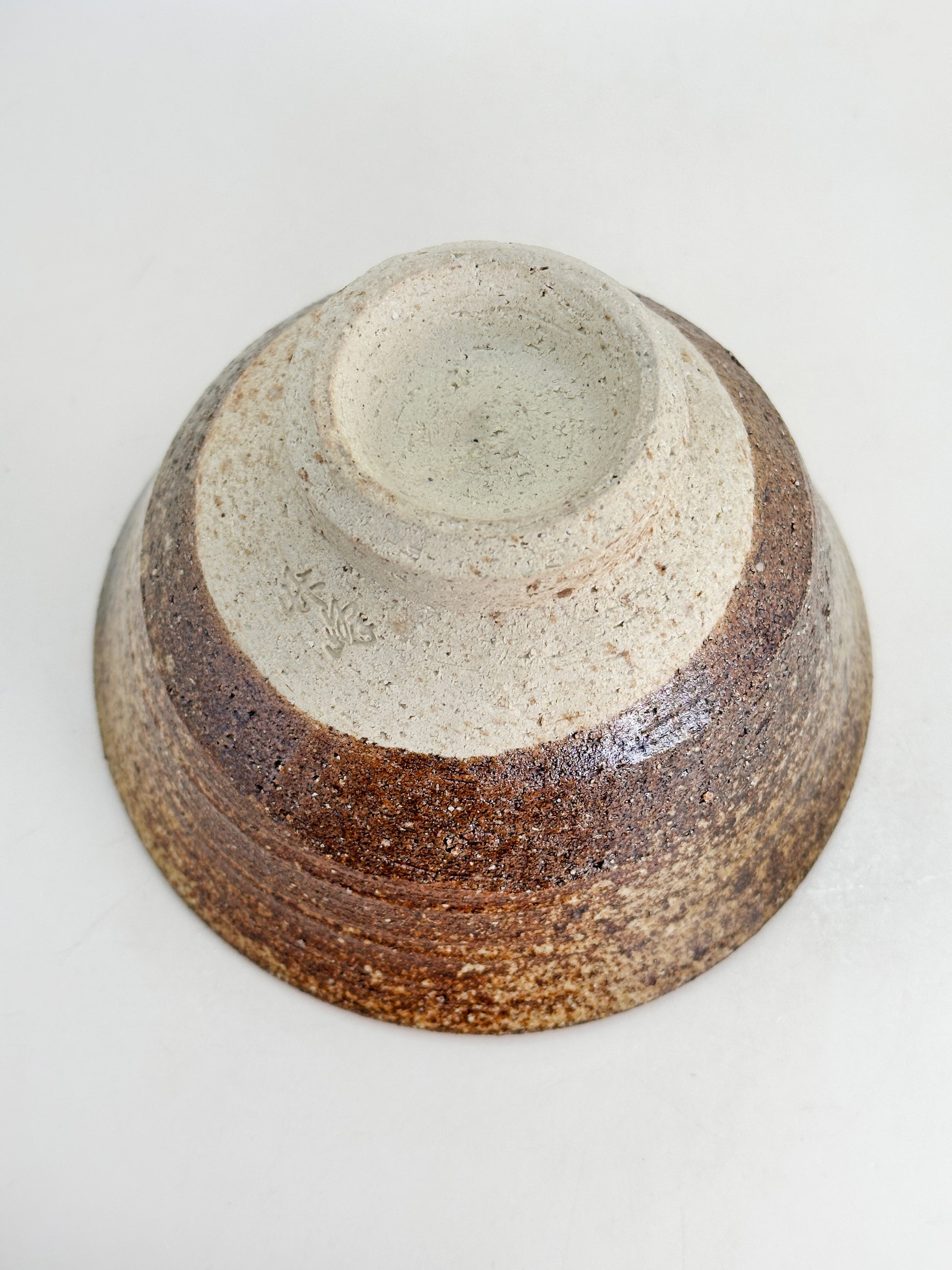 This Shigaraki-yaki (信楽焼) chawan embodies the earthy strength and natural beauty that have defined Shigaraki ware for centuries. Crafted from the region’s distinctive coarse clay, the bowl features a warm, reddish-brown body richly textured with feldspar inclusions and natural fire marks.