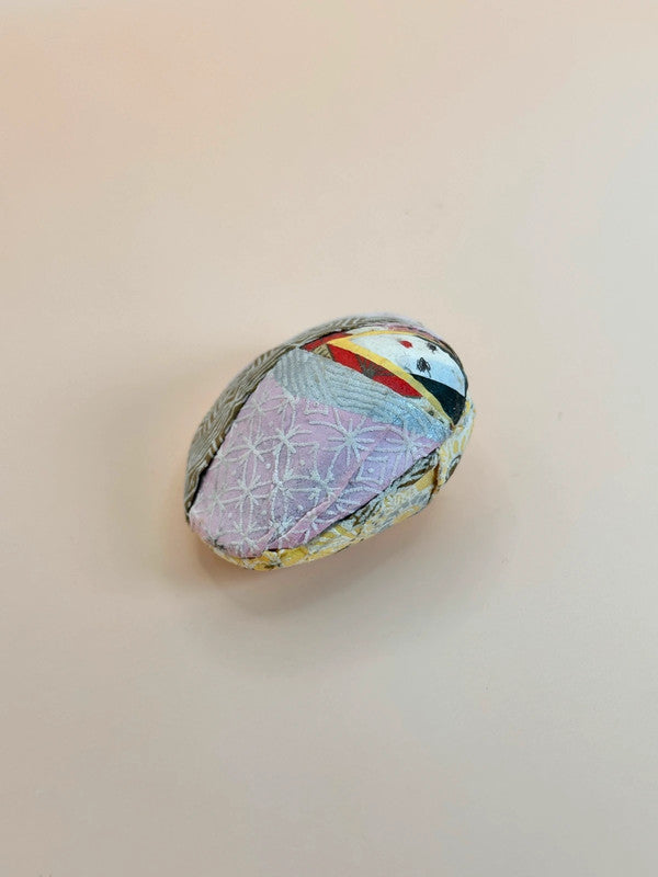 A vintage kai-bina 貝びな hina doll inspired by the tradition of Hinamatsuri (Girls' Day) in Japan. Shaped like a clam shell, it represents one half of a symbolic imperial couple, lovingly wrapped in layers of vibrant washi paper, a traditional Japanese handmade paper known for its strength, beauty, and intricate patterns.